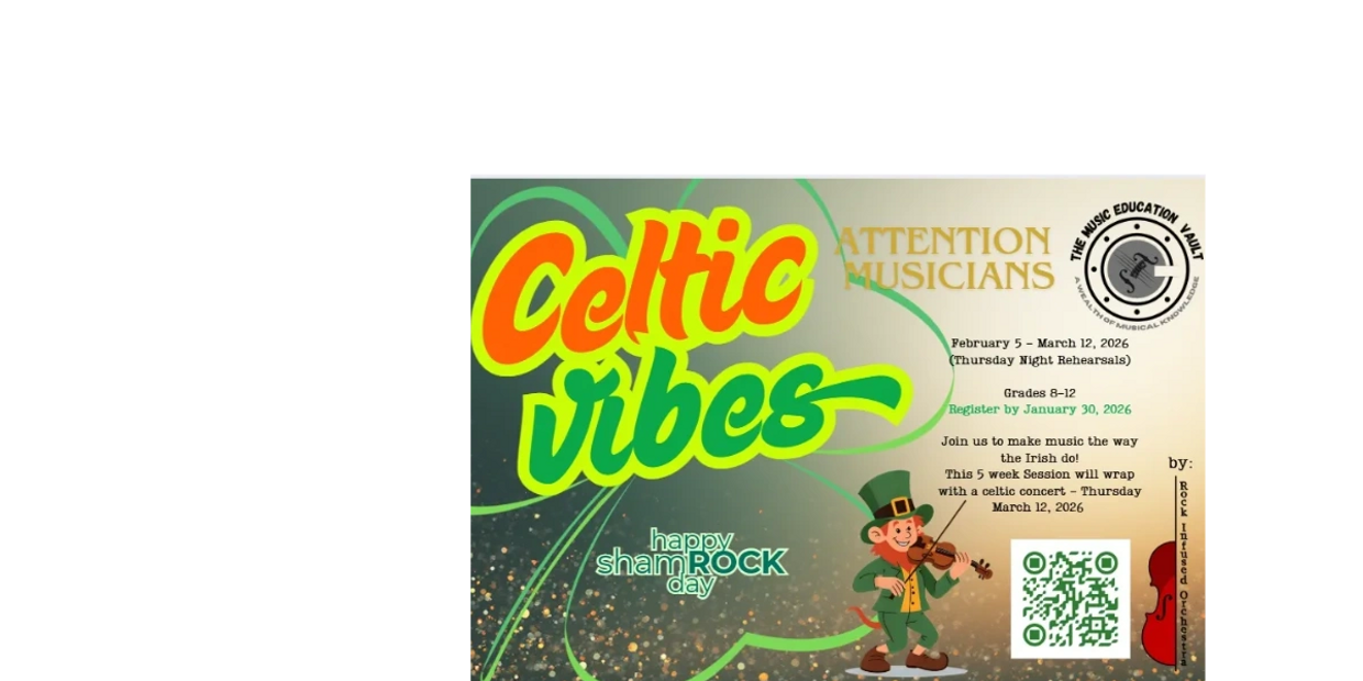 Join Rock Infused Orchestra for a Celtic Celebration. Discover the exhilarating energy of traditional Irish and Celtic music in this 5-week session. Participants will explore spirited tunes and lively dances from “across the pond,” while also receiving an introduction to improvisation.